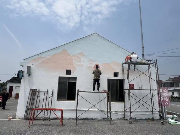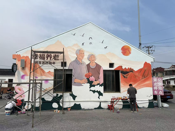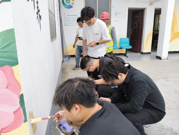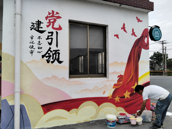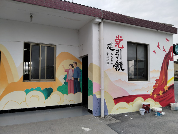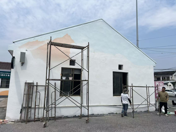 2025年4-5月,风景专业负责人张婷带领风景园林创新中心工作室成员为青浦区王港村继续进行墙绘设计服务。本次服务区别于2024墙绘设计内容,以红色党建和养老主题进行结合,展现乡村红色文创和康养文化结合的设计主题。