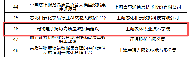近日,上海市数据局公布了首批高质量数据集先行先试项目名单,我院申报的“宠物电子病历高质量数据集建设”项目成功入选,成为全市61个获批项目之一。